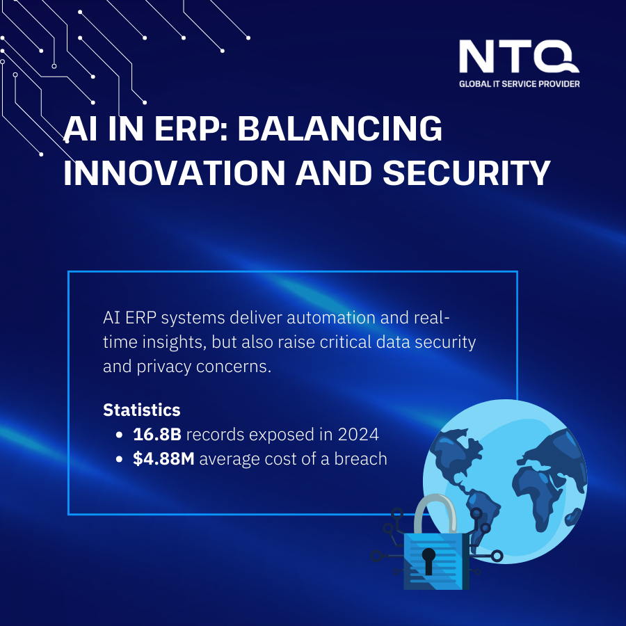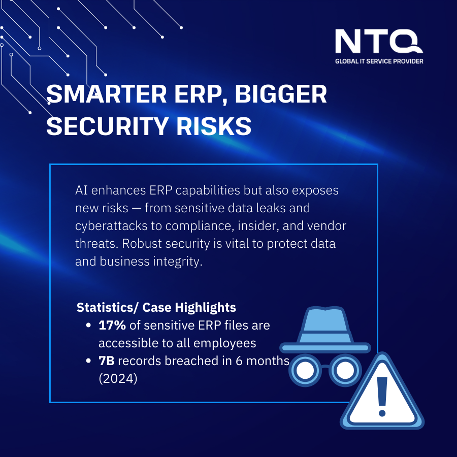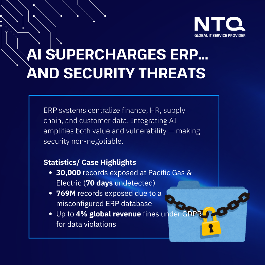 AI algorithms need large volumes of data, and ERP systems “store vast amounts of sensitive information” from finance to personal IDs (Tenant Inc., 2025). Any vulnerability (misconfiguration, weak encryption, etc.) could expose corporate secrets or personal data.
