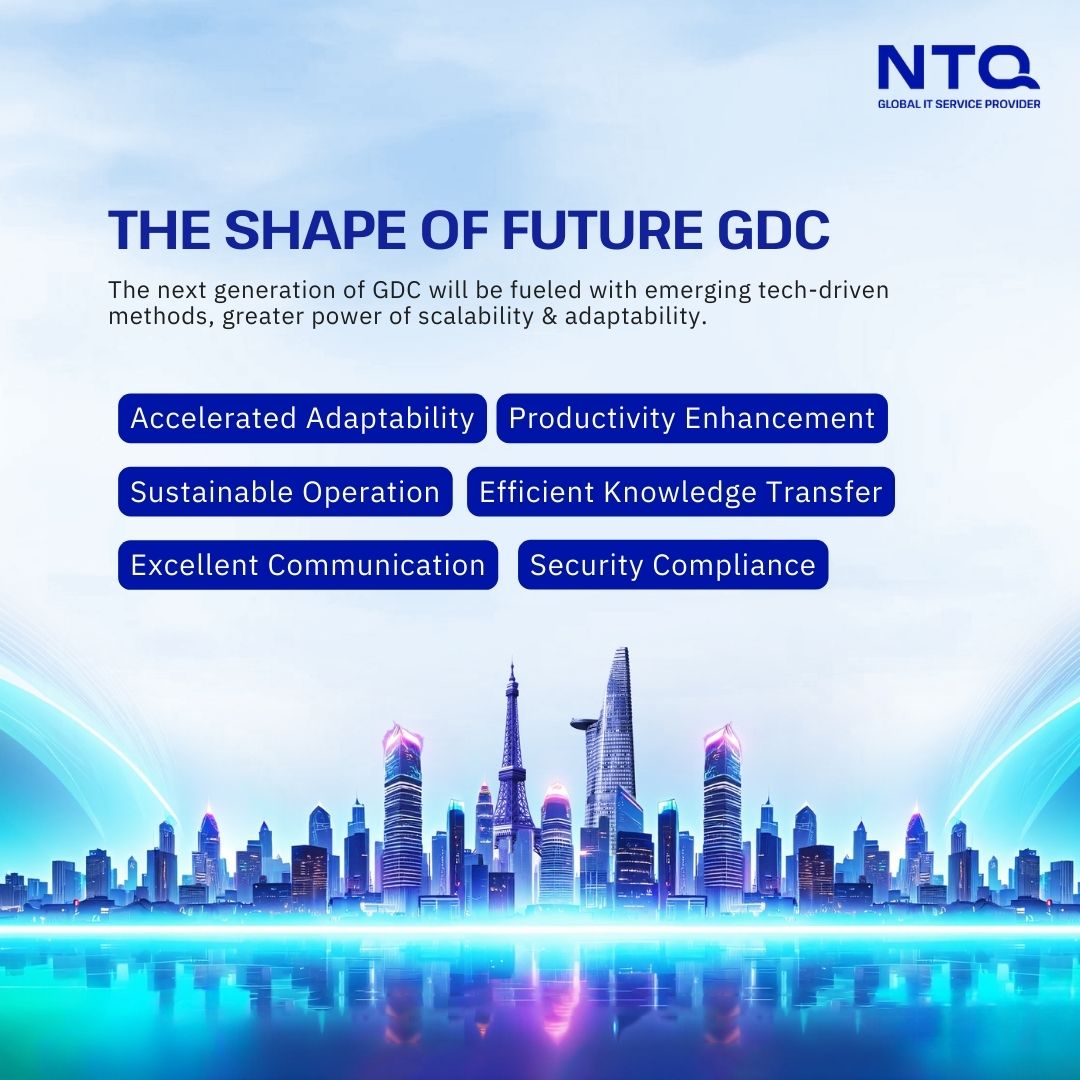In addition to adopting new technologies, modern GDC models also require improving human resources and fostering a mindset of flexibility and responsiveness. These elements are crucial for shaping the GDCs of the future. Let’s explore the factors that will drive the evolution of GDC models and how NTQ leverages the power of technology and resources through its exclusive Next-Gen GDC™ model.