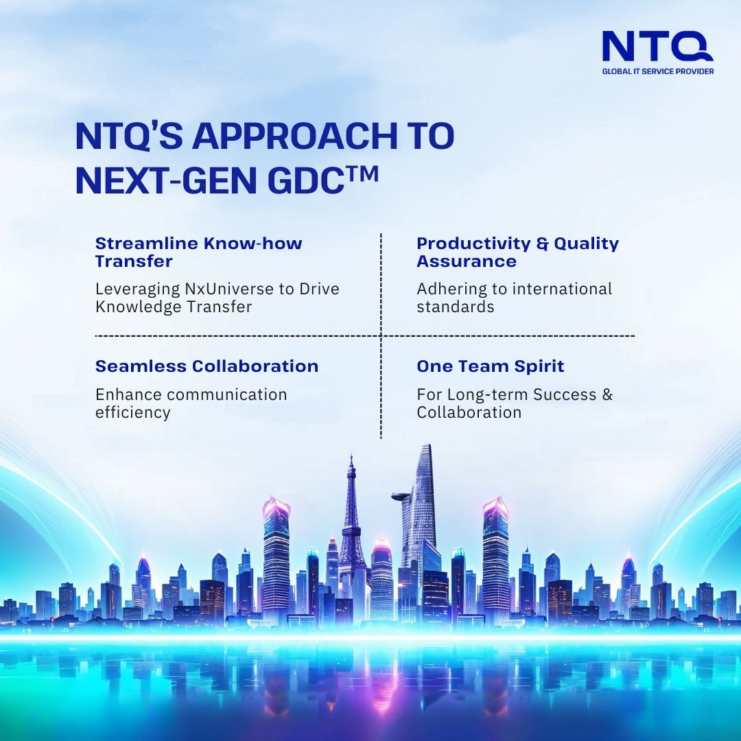 NTQ understands the current challenges businesses face in today’s dynamic tech landscape. As companies are pressured to adapt quickly and deliver high-quality results, NTQ is enhancing its capabilities, processes, and service approach to build a comprehensive Next-Gen Global Development Center (GDC) model. This model is designed to provide flexibility, speed, and scalability, ensuring businesses stay competitive and efficient through: