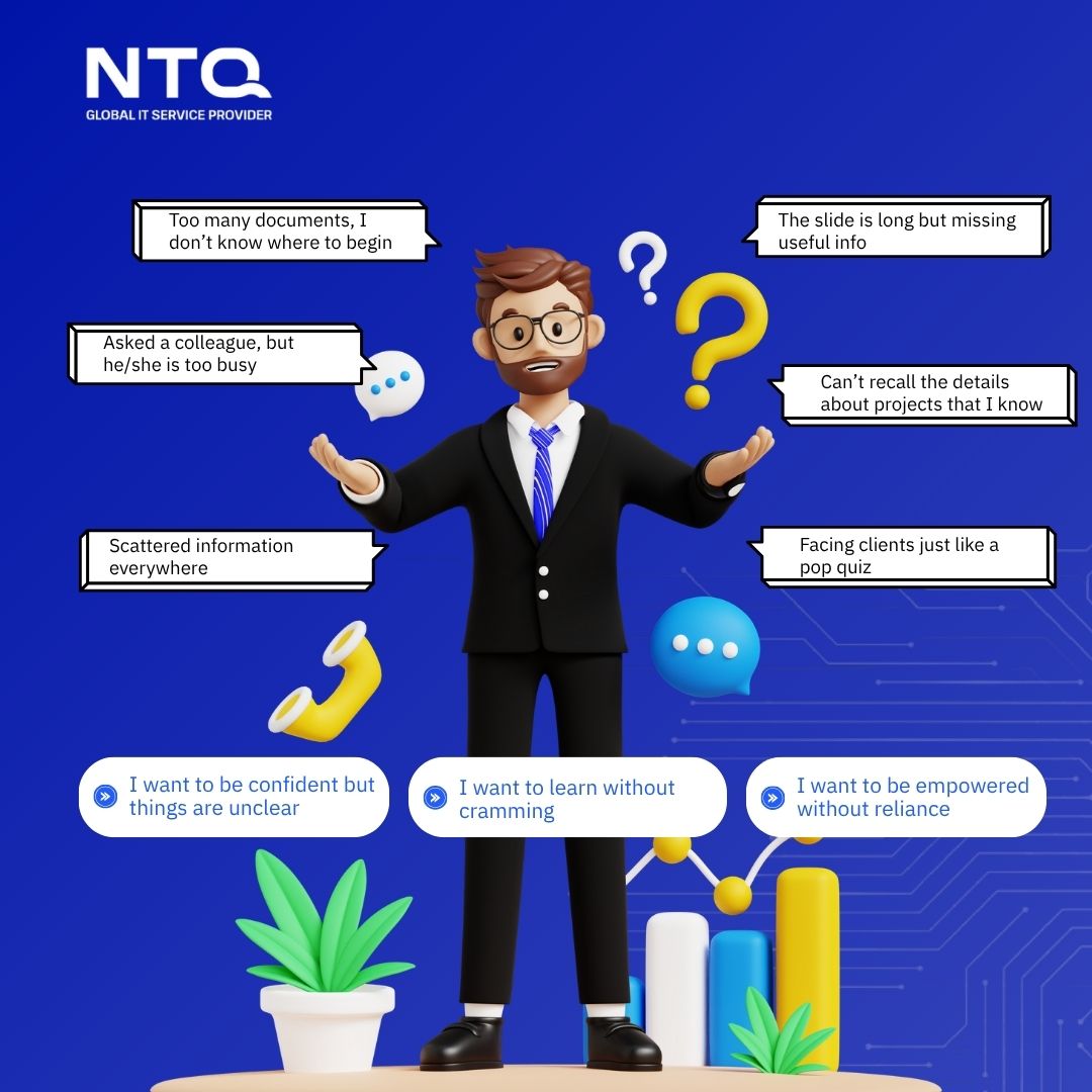 Working in the field of technology consulting and sales requires more than just communication skills — it demands a deep understanding of products, services, solutions, and the company’s brand positioning. For NTQ’s Sales and Presales teams, having fast, accurate, and consistent access to critical information is essential in every situation — whether it’s engaging with clients, consulting on solutions, building proposals, or preparing for international meetings.