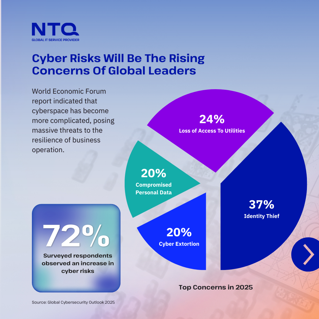 Along with an in-depth analysis of each operational process, business leaders, executives, and security specialists should always stay up-to-date with the latest technological advancements and their association with potential future threats. As a Global IT Service Provider, NTQ is fully aware of our responsibility to maintain secure digital practices by strictly following global information security standards, complying with clients’ policies, and actively monitoring, preventing, and responding instantly to any unwanted threats.