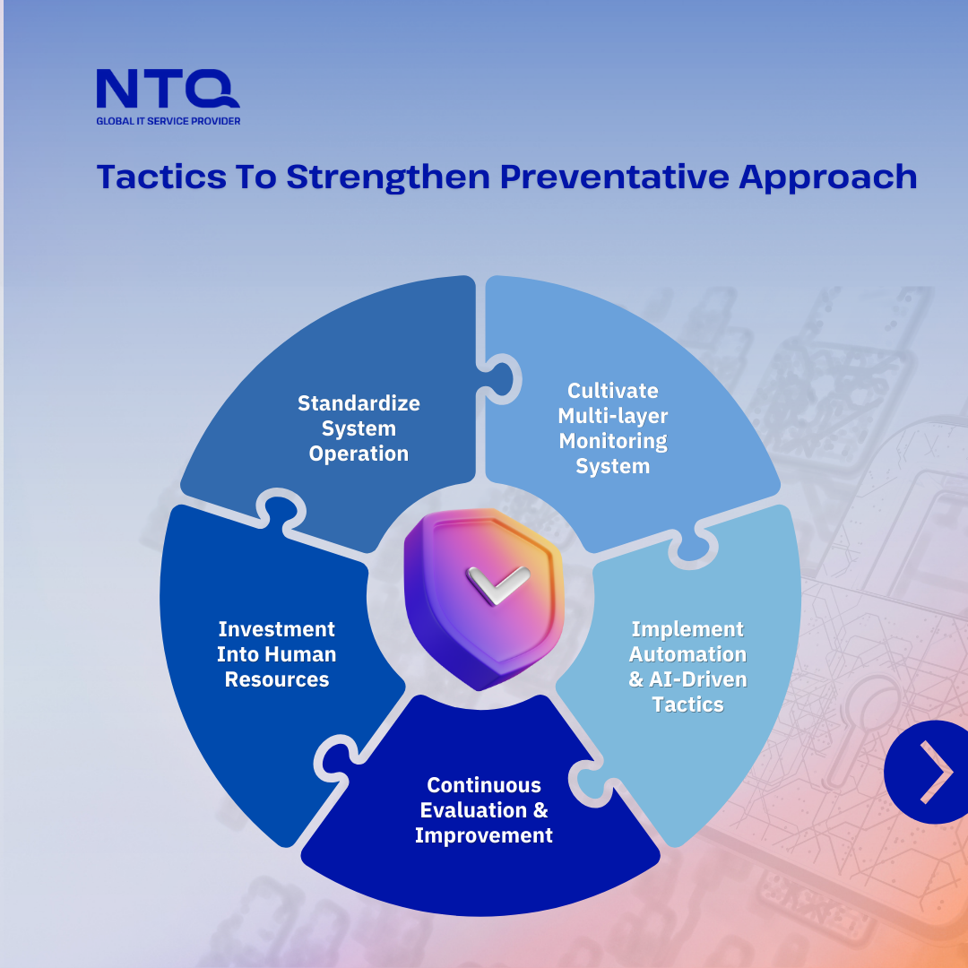Effective preventive measures not only help businesses improve protection against cyber incidents, but also significantly reduce operational costs, resolve infrastructure issues, and contribute to maintaining stable operations and sustainable development amidst the complex digital landscape. There are several tactics that businesses should adopt to ensure stable system operation and monitoring, notably including building a multi-layered system, implementing automated detection, and using AI-driven real-time data gathering, evaluation, and improvement on a regular basis.
