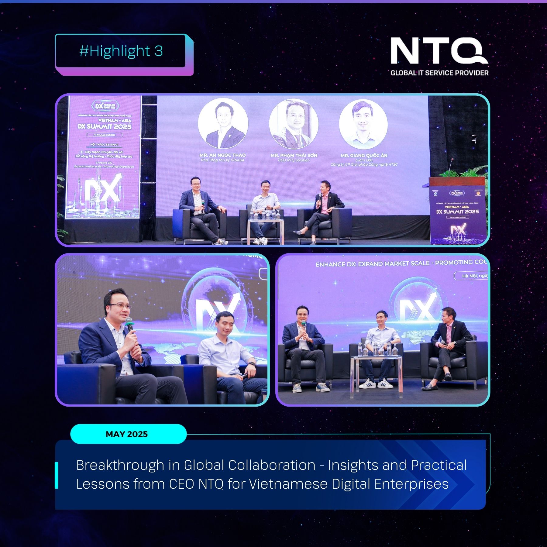 On May 28th, at the Vietnam-Asia DX Summit 2025, Mr. Pham Thai Son, CEO of NTQ, was one of the speakers at the fireside chat on the topic “Collaboration Between Solution Providers and IT Outsourcing Enterprises to Bring Vietnamese Technology Solutions to the Global Market.” During his session, NTQ’s CEO shared practical insights and experiences from NTQ’s approach to international markets, emphasizing the effectiveness of the Global Collaboration strategy.
