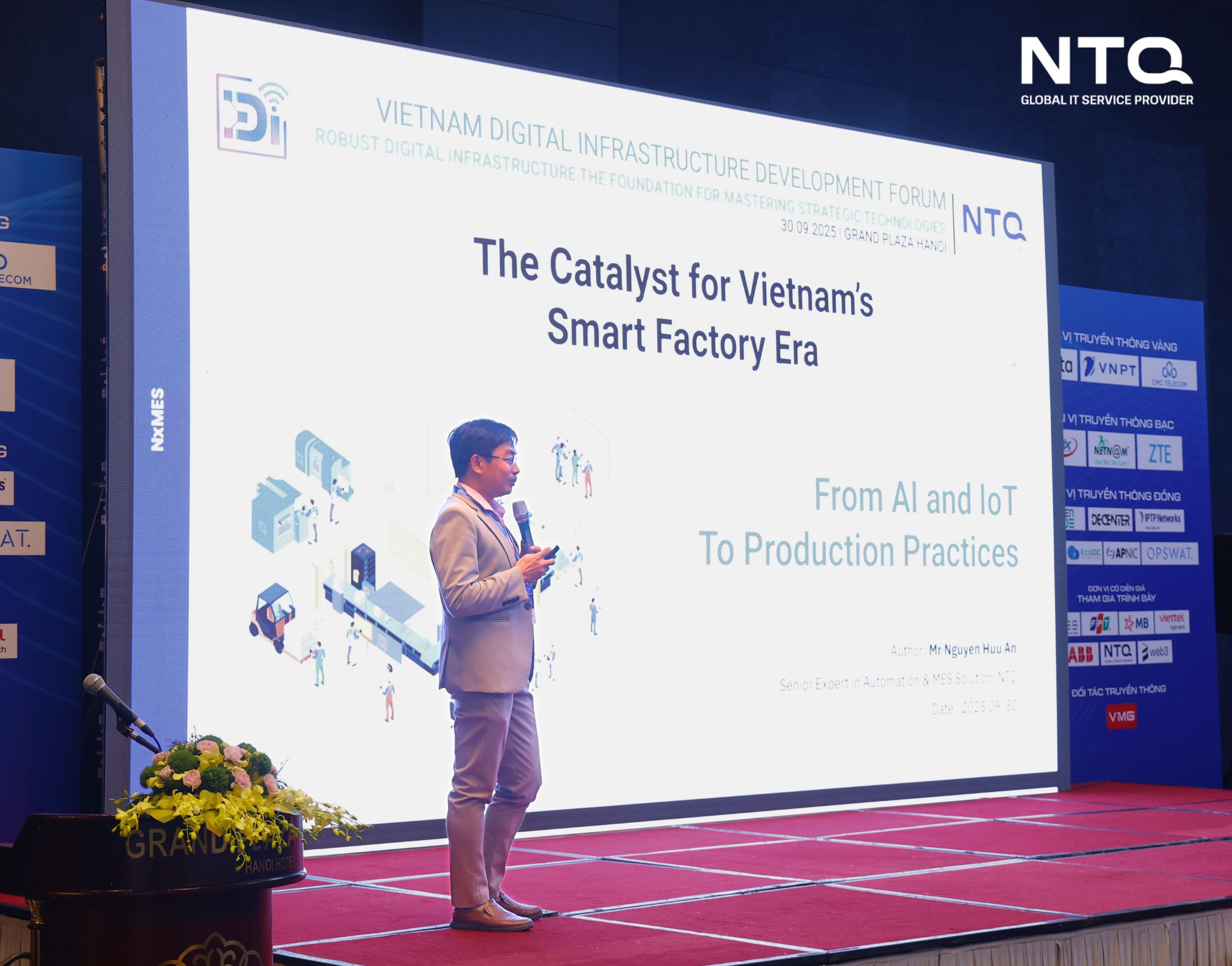 At the event, Mr. Nguyễn Hữu An – MES & Automation Expert at NTQ – delivered a presentation that provided multiple perspectives and practical solutions to help Vietnamese manufacturers and factories move toward smart factory models.