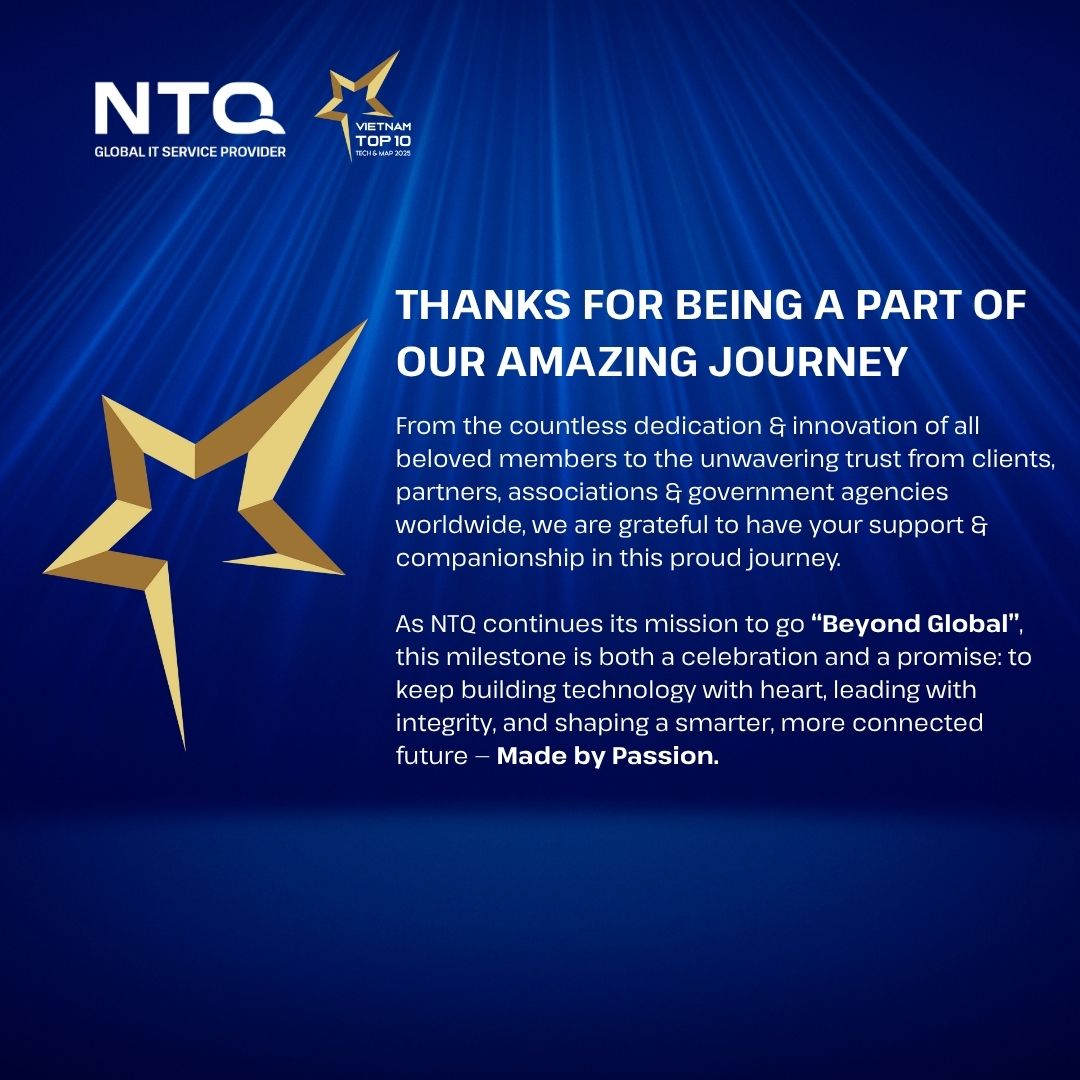 As NTQ continues its mission to go “Beyond Global”, this milestone is both a celebration and a promise: to keep building technology with heart, leading with integrity, and shaping a smarter, more connected future — Made by Passion.