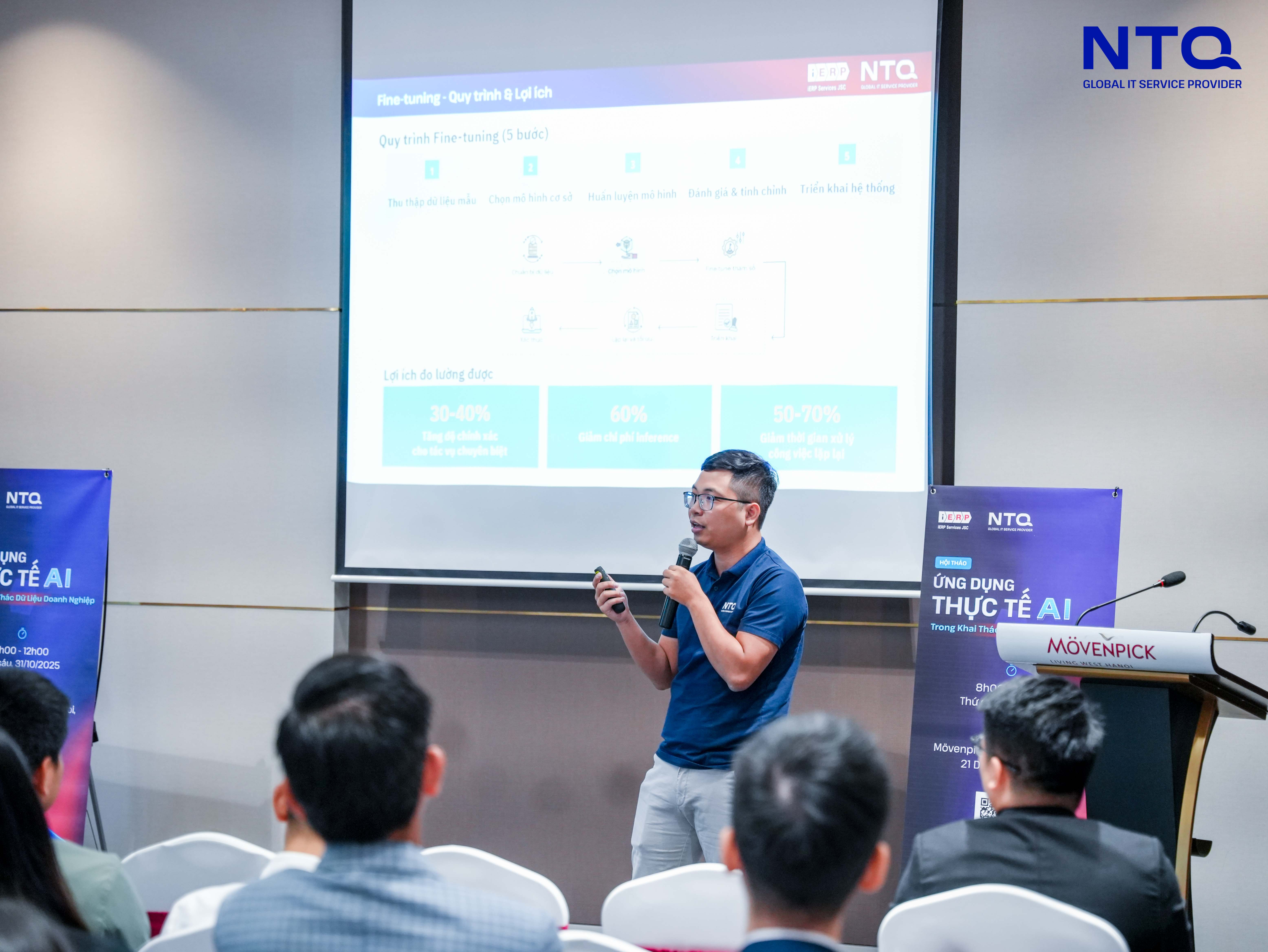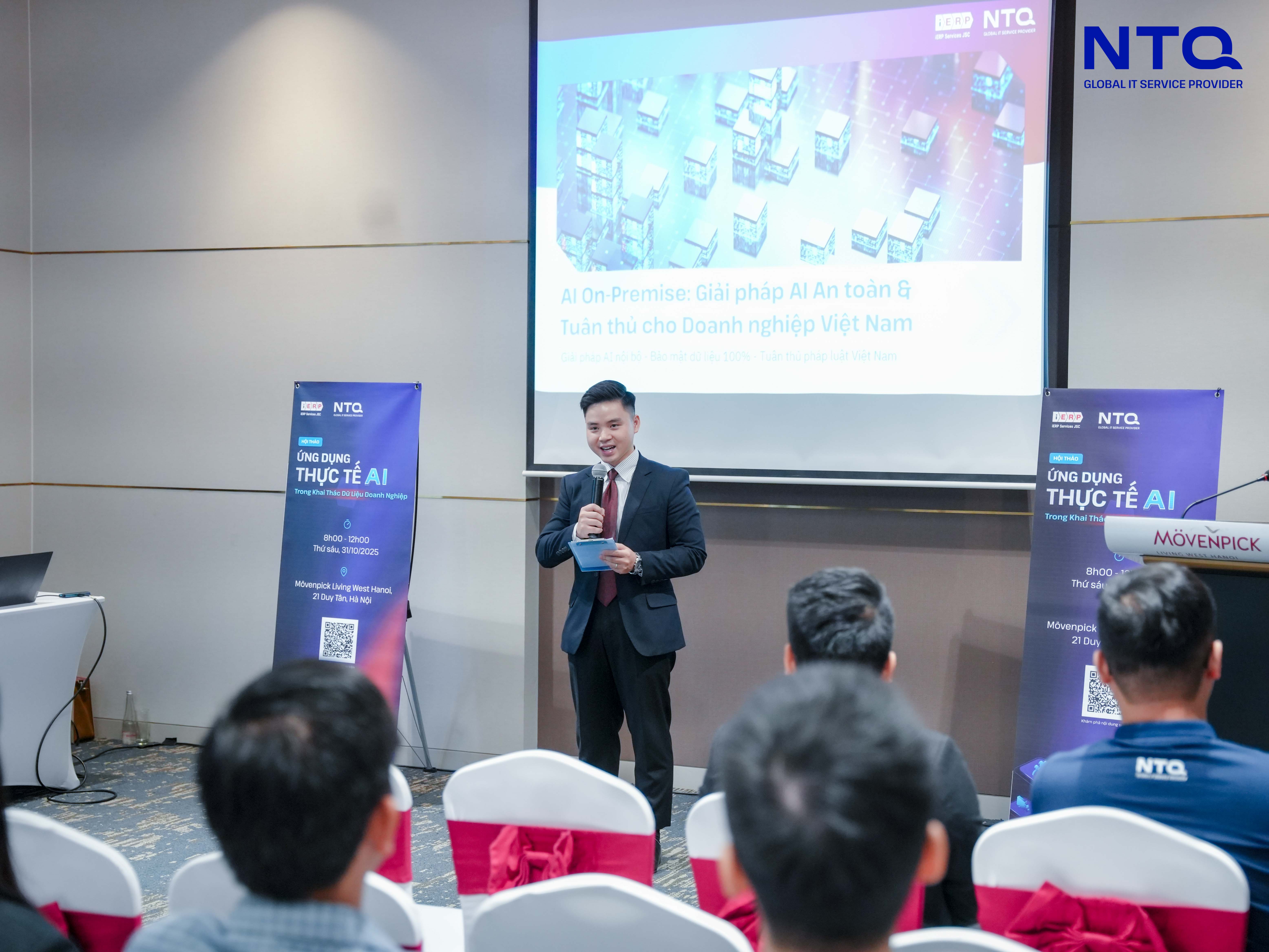 However, the controlled and secure implementation of AI — ensuring data safety and minimizing potential security risks — remains a critical concern. From this perspective, the speakers emphasized AI On-Premise, an approach that enables businesses to leverage AI’s analytical power while maintaining full control and security over their internal data. According to experts, an ideal AI On-Premise model goes beyond simply optimizing existing data infrastructure. It ensures that AI systems are trained and customized under the highest security standards, capable of detecting and preventing deceptive commands, and, most importantly, can operate reliably and efficiently across diverse hardware environments — even without Internet connectivity. This serves as a prime example of how NTQ builds and develops AI On-Premise models that deliver high performance and long-term sustainable value for enterprises.