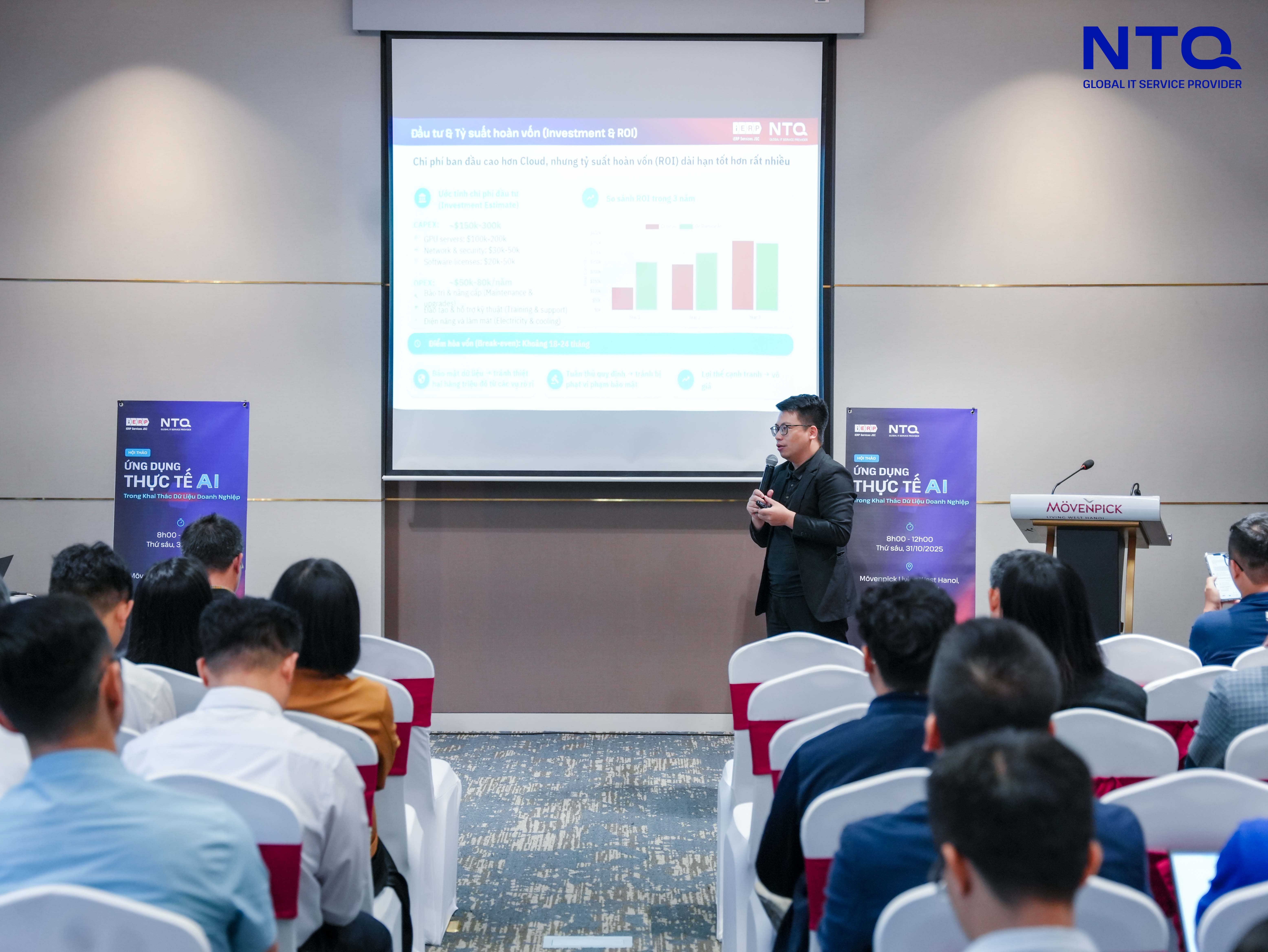 On 31st October in Hanoi, the workshop “Practical AI Applications for Enterprise Data Utilization” was successfully held, attracting the participation of numerous experts, managers, and executives from leading corporations and organizations in Vietnam. During the event, speakers from NTQ and iERP delivered insightful and practical perspectives on the strategic importance of data in today’s business landscape and how enterprises can leverage the power of AI to unlock data potential and enhance operational performance.